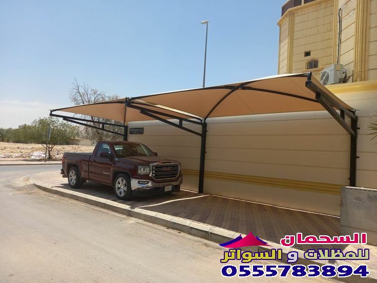 - كما يمكن تركيب هذا النوع من المظلات أيضًا في مواقف السيارات ويتم ذلك باستخدام عمودين فقط، وتتمثل طريقة التركيب في الآتي: